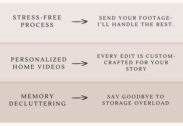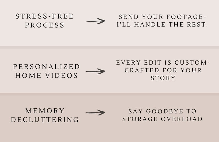In our fast-paced lives, it’s easy to accumulate countless memories on our phones, intended to be made into something more but often left untouched as new memories unfold. From the bliss of welcoming a new child to the thrill of adventurous vacations, these memories hold immense value. Life rarely slows down, and the thought of putting something together can feel overwhelming. That’s where we step in, ready to transform your beautiful moments into meaningful home videos you can cherish for years to come.